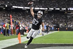 LAS VEGAS (AP) — Four days after losing 3-0, the Las Vegas Raiders set a franchise scoring record with a 63-21 win over the Los Angeles Chargers. The Raiders scored 42 points by halftime. They didn’t let the Chargers cross midfield until the third quarter. It was the most points for the Raiders, beating out their 59-14 victory at Denver in 2010. The Raiders led 42-0 at halftime, just three points shy of the NFL record for halftime margin that was set in 2009 when the New England led Tennessee 45-0. The halftime deficit was the biggest in Chargers history.