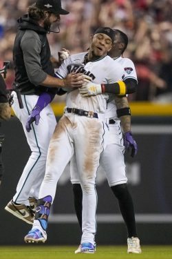 PHOENIX (AP) — Ketel Marte capped a three-hit afternoon with a walk-off single in the ninth, rookie Brandon Pfaadt pitched 5 2/3 scoreless innings and the Arizona Diamondbacks rallied to beat the Philadelphia Phillies 2-1 to close to 2-1 in the NL Championship Series. On the verge of falling behind 3-0 in the best-of-seven series, Arizona tied the score on Lourdes Gurriel Jr.’s RBI double. Gurriel opened the ninth with a leadoff walk off Craig Kimbrel, stole second and took third on Pavin Smith’s infield single. Marte drove in the tiebreaking run with one out.