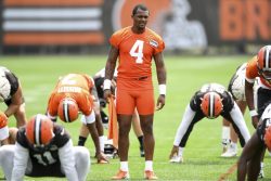 CLEVELAND (AP) — Browns quarterback Deshaun Watson will miss the rest of this season after fracturing his right shoulder in Sunday’s win over Baltimore. Watson will undergo surgery to repair the fracture, which happened when he was hit in the first quarter against the Ravens. Watson, who also injured his left ankle, stayed in the game and went 14 of 14 in the second half while leading the Browns to a last-second 33-31 win. The team says Watson is expected back next season, his third since signing a $230 million fully guaranteed contract last year despite allegations of sexual misconduct while he played for Houston that led to him being suspended for 11 games by the NFL.