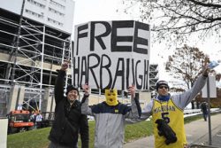 STATE COLLEGE, Pa. (AP) — No. 2 Michigan plays its biggest game of the season so far at No. 9 Penn State on Saturday. Whether Wolverines coach Jim Harbaugh will be leading his team on the sideline was is in the hands of a judge. The Big Ten banned Harbaugh from coaching the rest of the Wolverines’ final regular-season games as punishment for a sign-stealing scheme. The school almost immediately asked a judge for a court order putting the penalty on hold.
