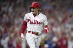 PHILADELPHIA (AP) — Bryson Stott crushed the second grand slam in Philadelphia Phillies postseason history and Aaron Nola tossed seven shutout innings in a performance worthy of a postseason ace that led to a 7-1 win and a two-game sweep over the Miami Marlins in their NL Wild Card Series. The Phillies advanced to an NL Division Series rematch against Ronald Acuña Jr., Matt Olson and the Braves. Game 1 in the best-of-five set is Saturday in Atlanta. J.T. Realmuto also homered for the Phillies.