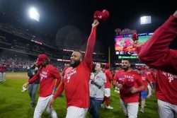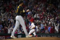 PHILADELPHIA (AP) — Johan Rojas hit an RBI single in the 10th inning that sent the Philadelphia Phillies to a 3-2 win over the Pittsburgh Pirates and clinched a National League wild-card berth. Rojas’ single off Pirates reliever David Bednar scored pinch-runner Christian Pache and sent the crowd of more than 30,000 fans into a frenzy and the Phillies mobbed each other in celebration. Brandon Marsh homered for the Phillies and Bryce Harper tacked on a sacrifice fly in the sixth for a 2-0 lead. Jeff Hoffman (5-2) tossed a scoreless 10th for the win. Bryan Reynolds and Henry Davis hit homers for the Pirates.
