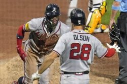 PITTSBURGH (AP) — Orlando Arcia’s two-run double with two outs in the top of the ninth capped a three-run inning and rallied the MLB-best Atlanta Braves to an 8-6 victory over the Pittsburgh Pirates on Tuesday night after star right fielder Ronald Acuña Jr. left the game. Pirates closer David Bednar came on to start the ninth with a 6-5 lead but took his third blown save in 26 opportunities this season. Arcia’s double came immediately after Kevin Pillar hit a tying single with the Braves down to their final out. Arcia also homered and finished with three hits and three RBIs to help the Braves end their three-game losing streak.