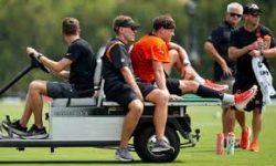 CINCINNATI (AP) — Bengals coach Zac Taylor says quarterback Joe Burrow could miss “several weeks” with a right calf strain. The 26-year-old franchise quarterback hobbled on one leg and then went to the ground after a scramble play near the end of practice Thursday. Backup QBs Jake Browning and Trevor Siemian took the snaps on Friday. Burrow is still negotiating with the Bengals on a long-term contract that could make him one of the NFL’s highest-paid players.