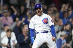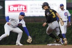 CHICAGO (AP) — Dansby Swanson started Chicago’s six-run sixth inning with a hit, then capped the rally with an RBI single as the Cubs overcame a four-run deficit to beat the Pittsburgh Pirates 10-6 on Wednesday night. Swanson finished with three hits and two RBIs to help Chicago knock off Pittsburgh, which entered in first in the NL Central, for the second straight night. The Cubs had 13 hits — 12 singles — to reach double-digits in hits and runs again. Mike Tauchman had three hits, two RBIs and made a running catch against the ivy on Carlos Santana’s sac fly in the seventh. Santana lofted a two-run homer and finished with four RBIs.