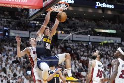 MIAMI (AP) — Aaron Gordon scored 27 points, Nikola Jokic added 23 and the Denver Nuggets moved one win away from their first NBA championship by beating the Miami Heat 108-95 on Friday night to take a 3-1 lead in the title series. Bruce Brown scored 21 off the bench for the Nuggets, who took both games in Miami to grab complete command. They’ll have three chances to win one game for a title, two of those in Denver, the first of them coming there in what’s sure to be a raucous atmosphere for Game 5 on Monday night. Jimmy Butler scored 25 points for Miami, which has now fallen into 3-1 holes in each of its last three finals appearances.
