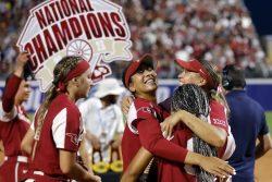 OKLAHOMA CITY (AP) — Jordy Bahl threw three innings of perfect relief and Oklahoma won its third straight Women’s College World Series title and seventh overall, beating Florida State 3-1 for a two-game sweep. The Sooners finished 61-1 and extended their Division I-record win streak to 53 games. They have won six titles since 2013 after getting their first in 2000, all under coach Patty Gasso. Oklahoma’s only defeat was a 4-3 loss at Baylor on Feb. 19. The Sooners set a record for win percentage and have the fewest losses of any NCAA champion. They led the nation in runs per game, earned run average and batting average.