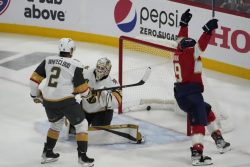 SUNRISE, Fla. (AP) — Carter Verhaeghe scored 4:27 into overtime and the Florida Panthers pulled off some more postseason dramatics to beat the Vegas Golden Knights 3-2 in Game 3 of the Stanley Cup Final on Thursday night. Matthew Tkachuk tied it with 2:13 left in the third period for the Panthers, who got the franchise’s first title-series game win in seven tries. Florida had to fend off a power play to start overtime, and Verhaeghe got the winner from the slot to get the Panthers within 2-1 in the series. Game 4 is Saturday night. Sergei Bobrovsky stopped 25 shots for Florida. Adin Hill made 20 saves for Vegas, but got beat on the only shot that came his way in overtime.