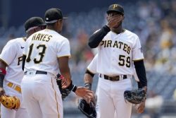 PITTSBURGH (AP) — Ke’Bryan Hayes tied career highs with five hits and four RBIs and the Pittsburgh Pirates drilled the mistake-prone New York Mets 14-7. The Pirates bounced back from a series loss to lowly Oakland sending the reeling Mets to a seventh straight loss. Hayes had a two-run single in the third and a two-run double in the fifth. The Pittsburgh third baseman is hitting .558 (19 of 34) with 11 RBIs during his eight-game hitting streak. Francisco Lindor hit his 12th home run for New York but the Mets stumbled without injured first baseman Pete Alonso.