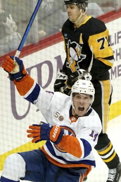 PITTSBURGH (AP) – Bo Horvat and Anders Lee scored less than 2 minutes apart in the third period to spark the New York Islanders to a 4-2 victory over the Pittsburgh Penguins. Horvat beat Tristan Jarry to the short side with 11:26 remaining to tie it. Jarry turned it over behind the Pittsburgh net moments later, kickstarting a sequence that ended with Lee jamming it home to give the injury-ravaged Islanders the lead. Brock Nelson scored twice for New York. Jarry made 28 saves in his return from a month-long absence due to an upper-body injury.