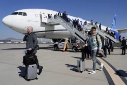 PHOENIX (AP) – A few minutes after the Kansas City Chiefs and quarterback Patrick Mahomes landed in Phoenix, the pilot hung a “Chiefs Kingdom” flag out of the window as players, coaches and staff got off the plane and walked across the runway. About an hour later, it was the Philadelphia Eagles who arrived in Arizona, with an “It’s a Philly Thing” flag fluttering in the runway as quarterback Jalen Hurts, coach Nick Sirianni and others made their way to a fleet of buses. Super Bowl 57 is just one week away. The Chiefs will face the Eagles on Feb. 12 in Glendale, Arizona.