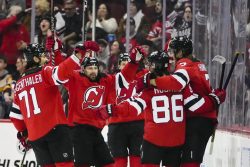 NEWARK, N.J. (AP) – Dougie Hamilton scored in overtime on the power-play and Vitek Vanecek made 25 saves as the New Jersey Devils downed the Pittsburgh Penguins 2-1. Hamilton’s goal at 2:07 was assisted by Jack Hughes and Nico Hischier and lifted the Devils to their second straight home overtime win. The Devils were returning from a 4-0-1 road trip heading into Sunday’s game. Pittsburgh’s Sidney Crosby scored in the first for his 22nd goal of the season and goalie Tristan Jarry had 23 saves.