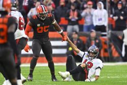 CLEVELAND (AP) – Nick Chubb scored on a 3-yard touchdown run with 19 seconds left in overtime and Cleveland rallied to stun Tom Brady and the Tampa Bay Buccaneers 23-17 in Browns quarterback Jacoby Brissett’s final start before Deshaun Watson returns from his suspension. Chubb powered through a pile of bodies at the goal line as the Browns sent Brissett off with a win. Watson, who was banned 11 games by the NFL for sexual misconduct allegations, will start next week in Houston. The Browns forced OT on tight end David Njoku’s remarkable, one-handed TD catch with 32 seconds left in regulation. Brady threw two touchdown passes, but couldn’t get anything going in the 10-minute OT.
