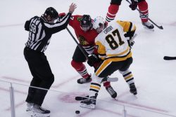 CHICAGO (AP) – Sidney Crosby had a goal and three assists, and the Pittsburgh Penguins topped the Chicago Blackhawks 5-3 for their third straight win. Evgeni Malkin scored in his 1,000th NHL game, helping Pittsburgh close out a 3-0 road trip. Rickard Rakell had a goal and an assist, and Brock McGinn also scored for the Penguins. Pittsburgh had a 3-2 lead before Phillipp Kurashev tied it for Chicago with a third-period shot from the corner behind the goal. But Crosby responded for the Penguins with 3:14 left, scoring his 10th of the season on a nice move in front.