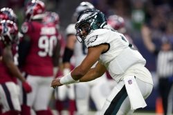 HOUSTON (AP) – Jalen Hurts threw for 243 yards and two touchdowns and the Philadelphia Eagles overcame a slow start to get a 29-17 win over the Houston Texans Thursday night, giving them the first 8-0 start in franchise history. Hurts lost a fumble in a forgettable first half and game was tied at halftime. But C.J. Gardner-Johnson grabbed his NFL-best and career-high fifth interception before Hurts threw a 17-yard touchdown pass to A.J. Brown to give them the lead in the third quarter.
