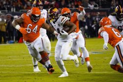 CHICAGO (AP) – Christian Holmes recovered a muffed punt by Velus Jones deep in Chicago territory to set up a 1-yard touchdown run by Brian Robinson midway through the fourth quarter, and the Washington Commanders stopped a four-game losing streak, hanging on to beat the Chicago Bears 12-7. áThe Commanders did just enough to come away with their first win since beating Jacksonville in the opener and handed the Bears (2-4) their third straight loss. Washington caught a huge break when it punted on fourth down at its 36. Jones had trouble tracking the ball, then let it hit off his arms. Holmes recovered it in a big pile at the 6, and Robinson scored two plays later.