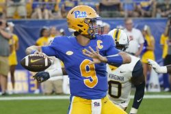 PITTSBURGH (AP) – MJ Devonshire returned a tipped pass 56 yards for a touchdown with 2:58 remaining and No. 17 Pittsburgh beat West Virginia 38-31 on Thursday night in the return of the Backyard Brawl. The Panthers edged their rivals for the first time since 2008 after a pass by West Virginia’s JT Daniels smacked off the hands of Bryce Ford-Wheaton and into the hands of Devonshire, who weaved his way through traffic to give Pitt its second touchdown in 43 seconds to turn a seven-point deficit into a lead it wouldn’t relinquish. Southern California transfer Kedon Slovis threw for 308 yards and a touchdown in his debut with the Panthers in the opener for both teams.