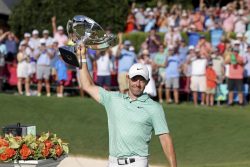ATLANTA (AP) – Rory McIlroy is the FedEx Cup champion for the third time. He stormed from a record-tying six shots behind to win the Tour Championship and capture the $18 million prize. Scottie Scheffler never trailed all week until the 70th hole. He built the six-shot lead Sunday morning with four birdies in six holes to complete the third round. But he was never on his game and made only one birdie in a round of 73. McIlroy shot a 66. He says winning felt even more significant because of the tumultuous year caused by Saudi-funded LIV Golf.