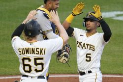 PITTSBURGH — Oneil Cruz collected his 12th RBI in 13 games this season to help Pittsburgh Pirates bounce back from a blowout loss with a 7-4 win over the Milwaukee Brewers on Saturday night. The 23-year-old prospect put the Pirates up 4-1 with two outs in the fourth on a 392-foot solo blast to right with a 112.3 mph exit velocity that chased Brewers starter Aaron Ashby. Cruz has at least one RBI in eight games since being recalled from Triple-A Indianapolis on June 20, and at least one in each of his first nine games at PNC Park. Cruz also used his glove to help Pirates right-hander Bryse Wilson (1-4) pick up his first win since Sept. 18, 2021. The shortstop stretched every bit of his 6-foot-7 frame to snag a line drive from Christian Yelich with two men in scoring position before trotting to third, finishing a double play to end the second inning. Wilson (1-4) was called up from Triple-A Indianapolis to make the start and allowed two runs on eight hits with four strikeouts over six innings. Pittsburgh has taken two of three in the four-game set, despite losing 19-2 on Friday.