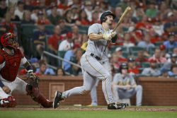 ST. LOUIS (AP) – Miles Mikolas was one strike from a no-hitter when he gave up a double to Cal Mitchell with two outs in the ninth inning, and the St. Louis Cardinals routed the Pittsburgh Pirates 9-1 to sweep a doubleheader. Mitchell drove a 2-2 curveball over the head of Gold Glove center fielder Harrison Bader and just beyond his outstretched mitt as he tried to make a running catch with his back to home plate. The ball bounced on the warning track 383 feet from the plate and over the wall in straightaway center for a ground-rule double. The hit came on the 129th pitch from Mikolas, most in the majors this season and 14 more than his previous career high set last month. The Pirates lost their ninth straight.