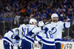 NEW YORK (AP) – Ondrej Palat scored on a deflection with 1:50 remaining to break a tie and lead the Tampa Bay Lightning to a 3-1 victory over the New York Rangers on Thursday night for a 3-2 lead in the Eastern Conference final. Mikhail Sergachev and Brandon Hagel also scored to help the two-time defending champion Lightning get their third straight win, the first by a road team in this series. Andre Vasilevskiy stopped 24 shots. Ryan Lindgren scored for New York, which had won eight straight at home. Igor Shesterkin finished with 24 saves. Game 6 is Saturday night in Tampa, Florida.
