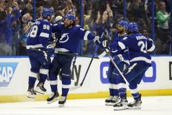 TAMPA, Fla. (AP) – Andrei Vasilevskiy had 49 saves and the Tampa Bay Lightning completed a four-game sweep of the Florida Panthers with a 2-0 victory that sends the two-time defending Stanley Cup champions back to the Eastern Conference final for the sixth time in eight years. Pat Maroon and Ondrej Palat scored, and Vasilevskiy won his sixth straight playoff game, a streak that began with the Lightning facing a 3-2 series deficit to Toronto in the opening round. The high-scoring Panthers averaged a NHL-best 4.11 goals while compiling the league’s best record during the regular season, but were limited to just three goals in four games against the Lightning. Vasilevskiy got his sixth shutout in his last seven series-clinching wins.