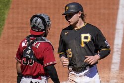 PITTSBURGH (AP) — Rookie Jack Suwinski hit a two-run homer in the bottom of the ninth inning and the Pittsburgh Pirates rallied past the Arizona Diamondbacks 2-1 on Saturday. Bryan Reynolds led off the ninth with a single against Mark Melancon (1-6), who blew his second save in 13 opportunities. Suwinski then lofted a flyball into the right-field stands on the ninth pitch of the at-bat for his first career game-ending hit and sixth home run of the season. Suwinski leads NL rookies in home runs. It has been an impressive showing for the 23-year-old right fielder, who was called up from Double-A Altoona in April in an emergency situation when Reynolds had a one-day stint on the COVID-19 injury list. The homer spoiled an outstanding effort by Arizona starter Zach Davies, who pitched 7 2/3 scoreless innings. He allowed three hits, struck out six and walked two. Chris Stratton (3-2) pitched a scoreless ninth in his 200th career appearance. Davies retired 18 batters in a row starting in the second inning until walking Tucapita Marcano with two outs in the eighth. The Pirates loaded the bases before Ian Kennedy relieved Davies and struck out Ke’Bryan Hayes to end the threat and preserve the 1-0 lead. Arizona’s Ketel Marte hit a pair of doubles and scored his team’s lone run in the sixth on a wild pitch while extending his hitting streak to a career-high 16 games.