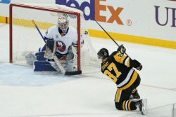 PITTSBURGH (AP) – Jake Guentzel scored twice, Sidney Crosby also had a goal and the Pittsburgh Penguins earned a playoff berth for the 16th straight season with a 6-3 victory over the New York Islanders. The Penguins extended the longest active postseason streak among teams in major North American professional sports. Danton Heinen, Kris Letang and Brock McGinn also scored for Pittsburgh which tied Calgary for the seventh-longest playoff streak in the NHL since 1967. Tristan Jarry made 36 saves for the Penguins. Zach Parise, Anders Lee and Zdeno Chara scored for the Islanders. Ilya Sorokin stopped 22 shots.