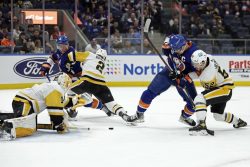 NEW YORK (AP) – Zach Parise and Josh Bailey each scored twice, and Kyle Palmieri had the lone goal in the shootout as the New York Islanders beat the Pittsburgh Penguins 5-4. Ilya Sorokin stopped Jake Guentzel, Sidney Crosby and Kris Letang in the shootout and finished with a career-high 43 saves for New York. Jake Guentzel had two goals and an assist, Crosby had two assist and Casey DeSmith made 33 saves for the Penguins, who lost for the fourth time in five games. Danton Heinen and Jeff Carter also scored for Pittsburgh.