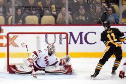PITTSBURGH (AP) – Brian Boyle, Danton Heinen and Zach Aston-Reese scored to take some of the pressure off Sidney Crosby, Tristan Jarry stopped 41 shots and the Pittsburgh Penguins edged the Carolina Hurricanes 4-2. Crosby scored an empty-netter to reach the 20-goal plateau for the 14th time as the Penguins beat the Metropolitan Division-leading Hurricanes for the first time in three tries. Brett Pesce scored his fifth of the season and Sebastian Aho added his 27th but Carolina lost in regulation for just the second time in its last 12 games.