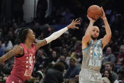 CLEVELAND (AP) – Steph Curry put on a 3-point clinic at the NBA All-Star game, but LeBron James had the final word. Curry made an All-Star Game-record 16 3-pointers and scored 50 points as Team LeBron beat Team Durant, 163-160 at Cleveland. He needed one more 3-pointer to break Anthony Davis’ record of 52 points but missed his final attempt. The game MVP nailed six treys in the second quarter, but he was just getting started. He added seven in the third period, but the game was tied heading into the final quarter. LeBron James put his team at the 163-point threshold by hitting a jumper that left him 5-0 since the leading vote-getters began to choose sides for the All-Star Game. Giannis Antetokounmpo had 30 points and James finished with 24 in his old home. Joel Embiid led Team Durant with 36 points.