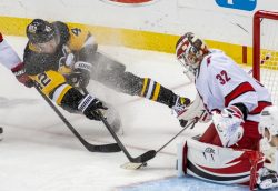PITTSBURGH (AP) – Jesper Fast scored 9 seconds into the third period to break a tie, Sebastian Aho followed with his 22nd goal of the season and the Carolina Hurricanes edged the Pittsburgh Penguins 4-3 on Sunday to move into first place in the Metropolitan Division. Jesperi Kotkaniemi and Jordan Staal also scored for Carolina, which never trailed in the first meeting of the season between the teams that entered the day tied atop perhaps the league’s most competitive division. Sidney Crosby, Bryan Rust and Evan Rodrigues scored for Pittsburgh.