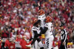 The Chiefs reached the end zone on each of their first three possessions to go up 21-3. They had a chance to end the half with an 18-point lead, but a Mahomes completion ended up short of the goal line on the final play of the half. Joe Burrow shook off a slow start to finish 23 of 38 passing for 250 yards, two touchdowns and one interception. Joe Mixon ran for 88 yards and Tee Higgins had six receptions for 103 yards. McPherson drilled four field goals, including a 52-yarder that put the Bengals ahead, 24-21. Harrison Butker’s 44-yard kick tied the game on the final play of regulation. Mahomes passed for 275 yards and hit Travis Kelce (KEHL’-see), Tyreek Hill and Mecole Hardman for touchdowns, but he was picked off twice in his fourth straight trip to the AFC Championship Game.