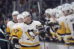 SEATTLE (AP) – Sidney Crosby and Danton Heinen scored 25 seconds apart early in the first period, Jake Guentzel extended his point streak to 13 games with two goals and an assist, and the Pittsburgh Penguins routed the Seattle Kraken 6-1. Jeff Carter scored 1:47 into the game, Crosby followed with his fourth goal at 4:42 and Heinen scored on a wrist shot moments later to leave the expansion Kraken stunned at the early onslaught. Guentzel scored his 14th of the season late in the second period and added his 15th midway through the third. He has five goals in the past two games. Jordan Eberle scored for Seattle.