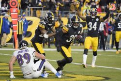 PITTSBURGH (AP) – The Pittsburgh Steelers edged the Baltimore Ravens 20-19 after turning aside a 2-point try by Baltimore in the final seconds. The Ravens pulled within one with 12 seconds to go and opted for a 2-point conversion instead of forcing overtime with an extra point. Lamar Jackson’s flip to tight end Mark Andrews fell incomplete and the Steelers survived. Ben Roethlisberger passed for 236 yards and two second-half touchdowns to Diontae Johnson as the Steelers halted a three-game winless streak. Pittsburgh improved to 6-5-1 with the win. The Ravens fell to 8-4.
