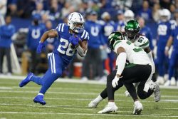 INDIANAPOLIS (AP) – The Indianapolis Colts were winners in their first prime-time home game since December 2017. Carson Wentz threw three touchdown passes and Jonathan Taylor rushed for 172 yards and two scores to carry the Colts past the Jets, 45-30. Wentz opened the second-half scoring with a 2-yard scoring pass to offensive lineman Danny Pinter, and Taylor sealed the win with a 78-yard sprint to make it 42-10. Jets backup QB Josh Johnson threw for a career-high 317 yards and had a career-best three touchdown passes in the final 18 minutes. Johnson entered the game after Mike White injured his right forearm in the first quarter, four days after throwing for 405 yards and three TDs in his first NFL start. The Colts improved to 4-5, while the Jets dropped to 2-7.