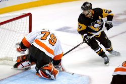 PITTSBURGH (AP) – Kris Letang stuffed a wraparound by Carter Hart 1:57 into overtime and the Pittsburgh Penguins beat Philadelphia 3-2. Playing for the first time since Oct. 19 after testing positive for COVID-19, Letang scored his first goal of the season and helped the Penguins end a three-game losing streak. Pittsburgh played without star center Sidney Crosby and head coach Mike Sullivan. Both have tested positive for COVID-19. Travis Konecny and Scott Laughton scored for the Flyers.
