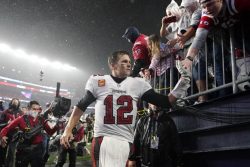 UNDATED (AP) – The weather was poor, but the outcome was sunny for Tom Brady and the Tampa Bay Buccaneers. Brady was a winner in his return to Foxborough as he rallied the Bucs to a 19-17 win over New England. Brady was 22 of 43 for 269 yards with no touchdowns on a rainy Sunday night, but he engineered the fourth-quarter drive to beat his former team. The winning drive was capped by Ryan Succop’s 48-yard field goal late in the fourth quarter. Ronald Jones had an 8-yard scoring run for the defending Super Bowl champions. Brady broke Drew Brees’ NFL career passing yardage record and became the fourth quarterback with victories against all 32 NFL teams, joining Brees, Brett Favre and Peyton Manning. New England had a chance to win, but Nick Folk’s 56-yard field-goal try hit the left upright with with less than a minute to play. The Patriots are 1-3 for the first time since 2001, when Brady took over the offense. Patriots rookie Mac Jones finished 31 of 40 for 275 yards and two touchdowns.