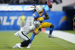 INGLEWOOD, Calif. (AP) – Justin Herbert threw for three touchdowns, Austin Ekeler rushed for 117 yards and scored twice and the Los Angeles Chargers knocked the Las Vegas Raiders from the unbeaten ranks with a 28-14 victory. Los Angeles, 3-1 for the first time since 2014, is part of a three-way tie atop the AFC West with Las Vegas and Denver. The Raiders’ loss leaves the Arizona Cardinals as the NFL’s lone undefeated team after four weeks. Herbert, who completed 25 of 38 passes for 222 yards, accounted for all of his TDs in the first half as the Chargers built a 21-0 halftime lead. The Raiders scored on their first two possessions of the second half to draw within a touchdown, but Ekeler gave Los Angeles some breathing room with an 11-yard scoring run.