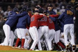 BOSTON (AP) – The Boston Red Sox have earned themselves a few days in Florida. The Bosox have moved into the AL Division Series by thumping the Yankees, 6-2 in the wild-card game. Xander Bogaerts and Kyle Schwarber belted early homers and Alex Verdugo drove in three runs to back a sterling performance by Nathan Eovaldi. Bogaerts set the tone with a two-run homer in the bottom of the first, two innings before Schwarber’s solo blast. Verdugo padded Boston’s lead with an RBI double and a two-run single. Eovaldi allowed a run and four hits while striking out eight over 5 1/3 innings, blanking New York until Anthony Rizzo homered in the sixth. Gerrit Cole was pulled with two on and no out in the third, charged with three runs and four hits. Giancarlo Stanton had three of New York’s six hits, including a ninth-inning homer. The ALDS begins Thursday in St. Petersburg as the Bosox take on the league-leading Tampa Bay Rays.