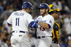 LOS ANGELES (AP) – Max Muncy slugged two homers and drove in five runs to highlight a power performance by the Los Angeles Dodgers in a 9-0 win over the Pittsburgh Pirates. The Dodgers completed a three-game sweep of the Pirates, won their sixth in a row overall, and are now three games behind the NL West-leading San Francisco Giants, who lost to the New York Mets 6-2. AJ Pollock and Corey Seager also homered for the Dodgers. The Pirates were limited to three hits in losing their fifth in a row and 15th in 17 games.