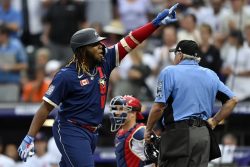DENVER (AP) – The American League has earned its eighth consecutive All-Star Game victory. Vladimir Guerrero Jr. and Mike Zunino hit solo homers and Xander Bogaerts had two of the AL’s nine hits in a 5-2 victory over the National League. Marcus Semien put the junior circuit ahead to stay with an RBI single in the second, one inning before Guerrero went deep. Guerrero also poked an RBI grounder and Bogaerts added a run-scoring single. Guerrero is the first Toronto Blue Jay to be named the MVP of the All-Star Game. J.T. Realmuto put the NL on the board with a solo shot in the fifth. Jared Walsh made a sliding catch in left field on Kris Bryant’s tricky liner with the bases loaded to end the eighth inning, keeping the AL ahead. Angels star Shohei Ohtani made history as the first All-Star to be selected as both a pitcher and a hitter. He was the AL starting pitcher and worked a perfect first inning to get the win but finished 0-for-2 at the plate. Corbin Burnes took the loss, yielding two runs and four hits over two frames. The AL owns a 46-43-2 lead in the all-time series.