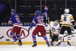 NEW YORK (AP) – Artemi Panarin had a goal and three assists, Adam Fox had a goal and two assists and the New York Rangers beat the Pittsburgh Penguins 8-4. Colin Blackwell, Mika Zibanejad, Ryan Strome, Alexis Lafreniere, Kaapo Kakko and Pavel Buchnevich also scored for New York, which extended its point streak to four games. It was the first time in 11 years that different Rangers scored in a game. Igor Shesterkin made 42 saves for New York. Jared McCann, Mike Matheson, Jake Guentzel and Brian Dumoulin scored for Pittsburgh, which lost for the second time in seven games.