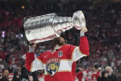 SUNRISE, Fla. (AP) — The Florida Panthers repeated as Stanley Cup champions by beating the Edmonton Oilers 5-1 in Game 6 of the final. They are the NHL’s first back-to-back winners since Tampa Bay in 2020 and ’21 and the third team to do it this century. Sam Reinhart scored four of the five goals, including the Cup clincher again. The Panthers have won 11 of 12 playoff series since Matthew Tkachuk arrived by trade and Paul Maurice took over as coach in the summer of 2022. Connor McDavid was again denied the first title of his career in his second consecutive final. Canada’s Stanley Cup drought reached 32 years. Panthers star Sam Bennett won the Conn Smythe Trophy as playoff MVP.