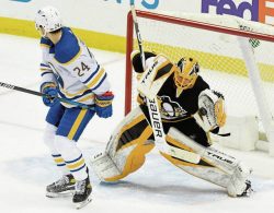 PITTSBURGH (AP) -Jared McCann scored a pair of power-play goals, Casey DeSmith made 36 saves and the Pittsburgh Penguins extended Buffalo’s winless streak to 16 straight with a 4-0 victory. Radim Zohorna picked up a goal on his first shot in the NHL for the Penguins. Jake Guentzel added an empty-netter and Sidney Crosby had three assists to raise his career point total to 1,300. Buffalo general manager Kevyn Adams served as head coach after interim Don Granato and assistant Matt Ellis were placed in the NHL’s COVID-19 protocol a few hours before the opening faceoff.