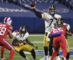 ORCHARD PARK, N.Y. (AP) – Josh Allen threw two touchdown passes and safety Taron Johnson returned an interception 51 yards for a score in the Buffalo Bills’ 26-15 win over the Pittsburgh Steelers. The Bills won for the sixth time in seven outings, and inched closer to claiming their first AFC East title since 1995 and third playoff berth in four seasons. Buffalo can clinch both as early as Monday night if Baltimore loses to Cleveland. The AFC North-leading Steelers dropped to 11-2 and have lost consecutive games in six days following a 23-17 loss to Washington, and dropped a game behind the AFC-leading Kansas City Chiefs. Pittsburgh was still able to clinch its first playoff berth in three years before kickoff by virtue of the Miami Dolphins’ 33-27 loss to Kansas City earlier in the day.