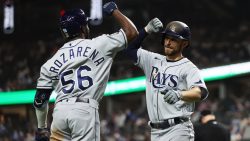 ARLINGTON, Texas (AP) – The World Series is tied at a game apiece after Brandon Lowe broke out of a three-week slump. Lowe homered twice and had three RBIs as the Rays downed the Dodgers, 6-4. He put the Rays ahead with a first-inning blast and added a two-run shot that made it 5-0 in the fifth. Lowe was hitting just .107 this postseason, including an 0-for-4 performance in Game 1.