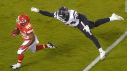 KANSAS CITY, Mo. (AP) – The Kansas City Chiefs appear to have another offensive weapon after opening their Super Bowl title defense with a 34-20 win over the Houston Texans. Rookie Clyde Edwards-Helaire ran through the rain for 138 yards and a touchdown in his first game since the Chiefs grabbed him in the first round of the NFL draft out of LSU. The pint-sized dynamo unleashed a wicked stutter-step before running 27 yards for his first career TD. Meanwhile, the Chiefs’ aerial attack is as potent as it was during their Super Bowl run. Super Bowl MVP Patrick Mahomes (mah-HOHMZ’) Jr. threw for 211 yards, including scoring strikes to Travis Kelce, Sammy Watkins and Tyreek Hill. The Chiefs have won 10 straight dating to last season, including their come-from-behind 51-31 victory over the Texans in the divisional round of the playoffs. Houston quarterback Deshaun Watson threw a touchdown pass and ran for another score, but he also was under relentless pressure and was intercepted once. David Johnson provided the biggest bright spot for Houston, running for 77 yards and a score. The game was attended by a socially-distanced crowd of about 17,000 due to the coronavirus pandemic.