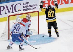 TORONTO (AP) – Sidney Crosby, Jason Zucker and Jake Guentzel scored for the Pittsburgh Penguins in a 3-1 victory over the Montreal Canadiens, tying the best-of-five qualifying series at one game apiece. Jesperi Kotkaniemi scored for the Canadiens. The Canadiens opened the series with a 3-2 overtime win on Saturday, but were flat from the start in Game 2 and never recovered. Game 3 is Wednesday night.