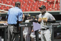 ST. LOUIS (AP) – Pittsburgh’s Derek Shelton staged baseball’s first major, socially distanced umpire argument, then got his first victory as a big league manager as the Pirates beat the St. Louis Cardinals 5-1. Shelton came out to argue with plate umpire Jordan Baker in the third inning after pitcher Derek Holland was ejected from the dugout for arguing balls and strikes. Shelton pulled a gaiter over his face as he left the dugout, and Baker pulled a face mask out of his pocket and held it to his face as Shelton argued from about six feet away. Baker let Shelton say his peace, and the first-year skipper was not ejected.